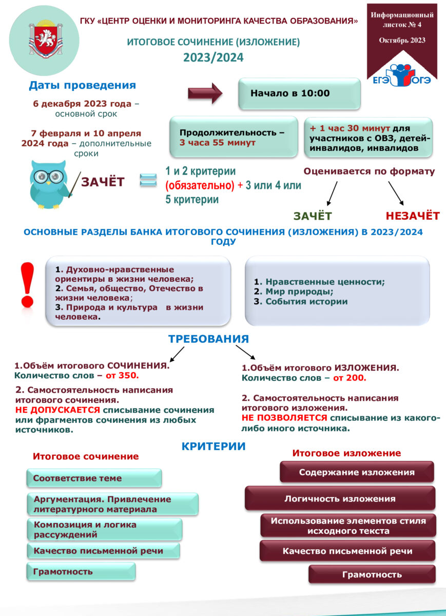 Порядок проведения итогового сочинения (изложения)